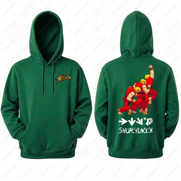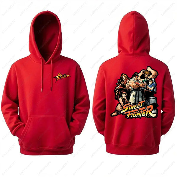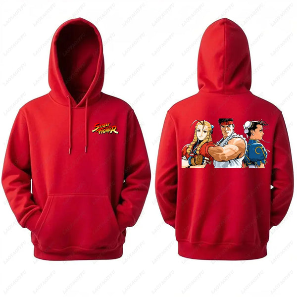 Men's Street Fighter Hoodie Anime Print Hooded Long Sleeve Sweatshirt Double Sided Graphic Hoodies All Characters Active Design